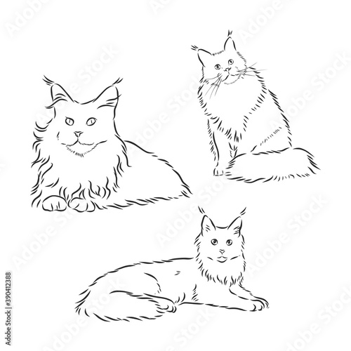 Cats set, vector illustration, hand-drawn cute fluffy cats. cat vector sketch illustration