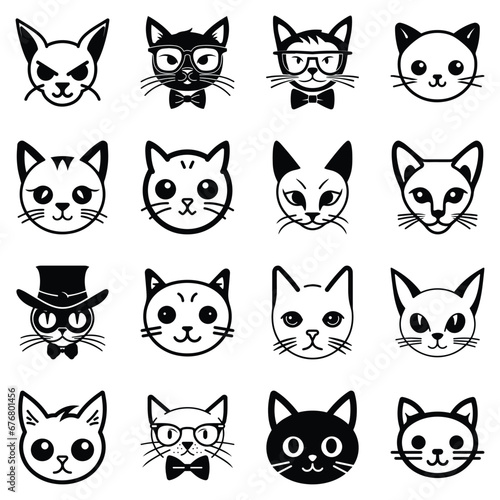 Cats3 Flat Icon Set Isolated On White Background