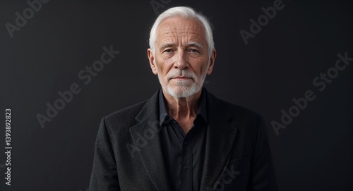 Caucasian elderly man on black plain bright background modern chic fashion pose model portrait portrait banner with copy space ad concept marketing