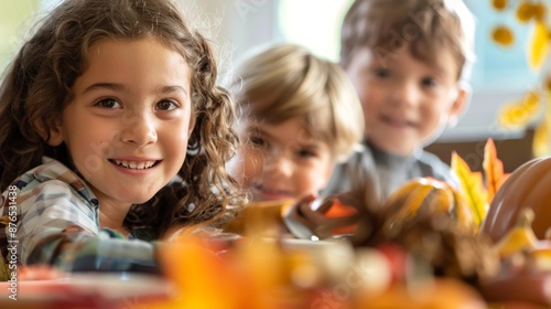 Caucasian girl enjoying a festive Thanksgiving meal, Concept of family gathering, holiday celebration, children at seasonal events