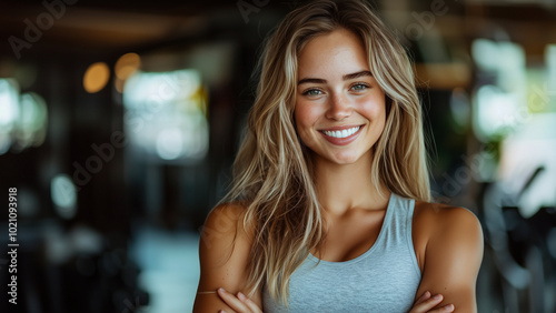 Caucasian Woman Fitness Trainer - smiling, woman, fitness, gym, workout, healthy, lifestyle, portrait, exercise, confidence, active, personal trainer, wellness, beauty, happiness