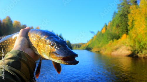 caught pike on taiga river