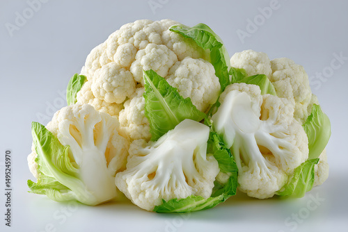 Cauliflower heads and green leaves are displayed, showcasing freshness and nutritious options for meals