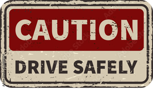 Caution drive safely vintage rusty metal sign