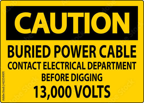 Caution Sign Buried Power Cable Contact Electrical Department Before Digging 13,000 Volts