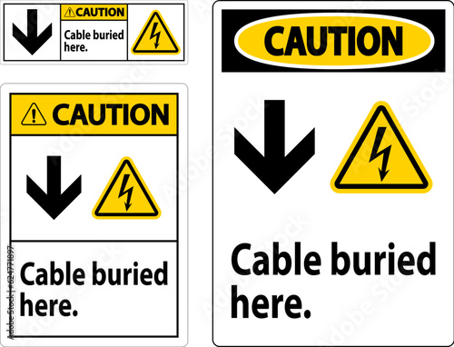 Caution Sign Cable Buried Here. With Down Arrow and Electric Shock Symbol