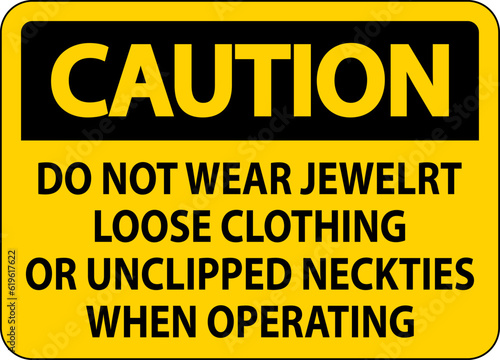 Caution Sign Do not Wear Jewelry, Loose Clothing or Unclipped Neckties when Operating