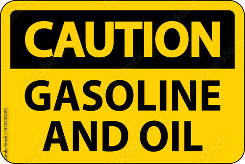 Caution Sign Gasoline And Oil On White Background