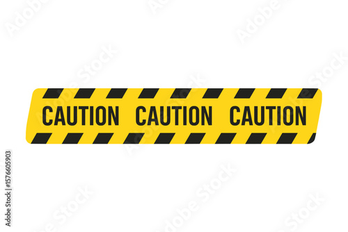 Caution Warning Tape Banner, Construction Site Safety Barrier, Road Hazard Area, Yellow Black Striped Tape, Repeating Caution Text, Transparent Background Vector Illustration