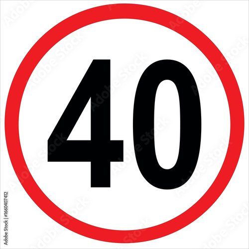 Cautionary Driving 40 km/h Red Circle Sign Icon Isloated On White Background
