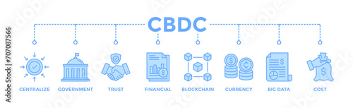 Cbdc banner web icon vector illustration concept of central bank digital currency with icons of centralize, government, trust, financial, blockchain, currency, big data and cost