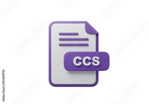 紫色のCCSテキストを持つ白いファイル形式アイコン3Dレンダリング透明な背景