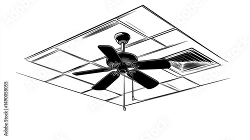 Ceiling fan, air vent, office, grid ceiling, interior design, workspace