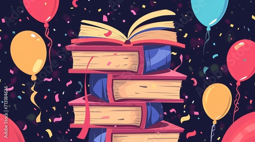 Celebrate Book Day 2024, Balloons, Confetti, and a Towering Stack of Books!