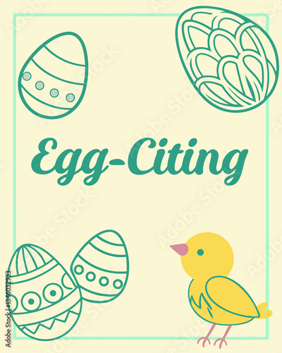 Celebrate easter with decorated eggs and a cute chick in this festive spring image. Perfect for Spring Invitations, Holiday Branding, and Creative Event Projects