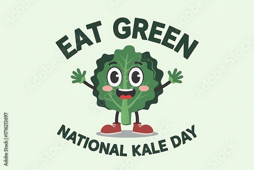 Celebrate National Kale Day with a happy cartoon kale character promoting healthy eating!