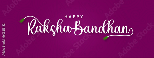Celebrate Raksha Bandhan with a festive design featuring golden calligraphy and rakhi thread on a purple background. Perfect for greeting cards, social media, and print
