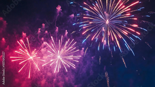 Celebrate the arrival of New Year 2025 with vibrant fireworks lighting up the night sky