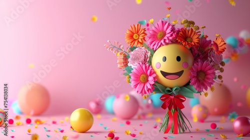 Celebrate with joy using this smiley bouquet vector design, perfect for adding a touch of happiness to your birthday greetings.