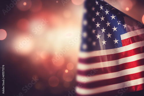 Celebrating Independence Day, american flag in sparkling lights. Generetive ai.