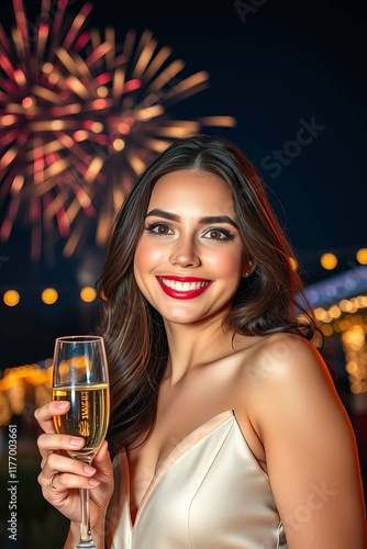 Celebrating New Year's Eve with Sparkling Champagne and Fireworks