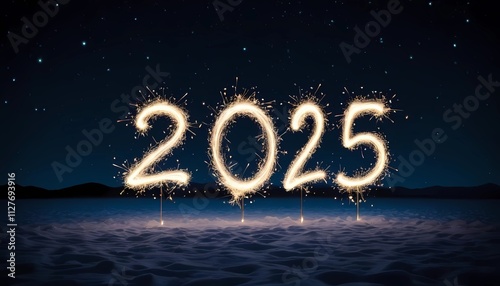 Celebrating the arrival of 2025 with sparkling creativity under a starlit sky. Generative AI