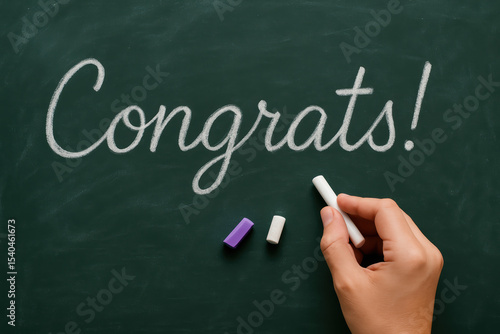 Celebration accomplishment is expressed on a chalkboard where ideas and recognition come alive with handwritten chalk marks
