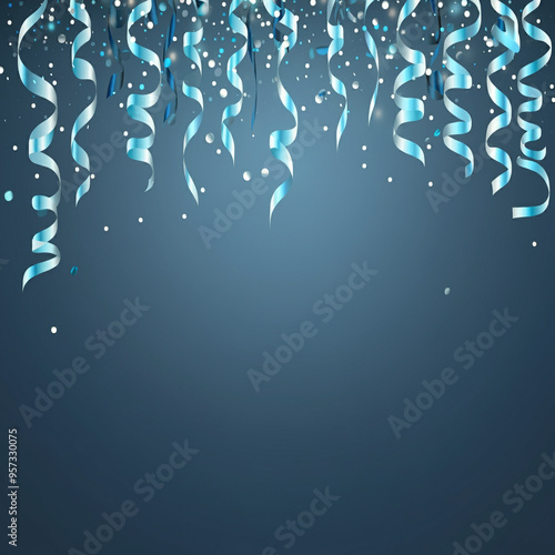 Celebration background with blues confetti stars and party streamers, Christmas, birthday and wedding concept