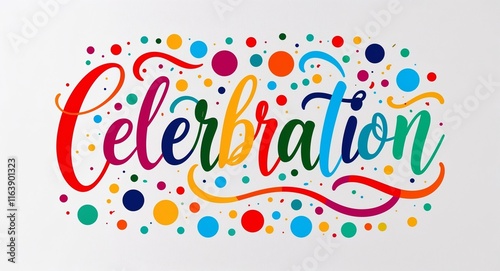 celebration colorful calligraphic minimalist lettering art design on plain white background