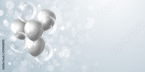 Celebration frame party banner with gray balloons background. Sale Vector illustration. Grand Opening Card luxury greeting rich.