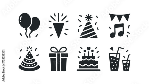 Celebration Icons Set Festive Symbols Collection. Vector hand drawn illustration