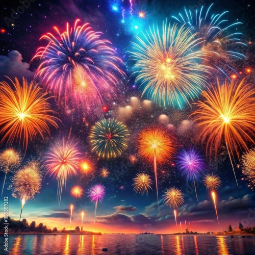 Celebration in Lights Vibrant Fireworks Show Night Sky photo