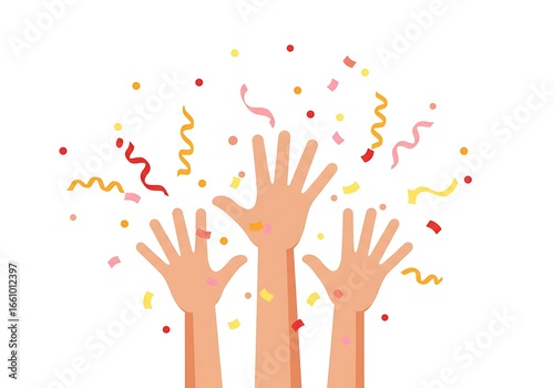 Celebration with Raised Hands and Confetti - Joyful Illustration