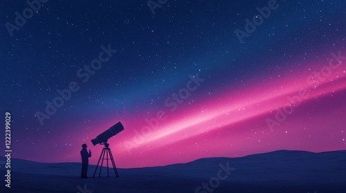 Celestial Aurora Silhouette Astronomer with Telescope Under Vibrant Stars - Experiential EdTech Visuals for Space Enthusiast Engagement and STEM Learning