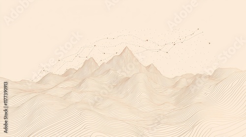 Celestial Capricorn: Minimal Line Art with Mountain Peaks and Star Cluster