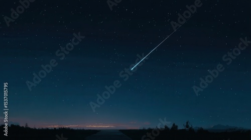 Celestial Cascade: A solitary comet streaks across a night sky ablaze with stars, a radiant spectacle that ignites the imagination.