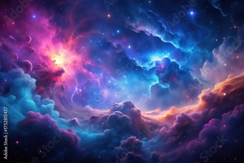 Celestial Dreamscape A Vivid Panorama of Cosmic Clouds and Sparkling Stars, Swirling in a Symphony of Hues
