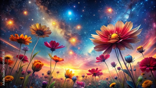 Celestial Flowers in a Starlit Sky – Ethereal Double Exposure Photography for a Surreal Experience