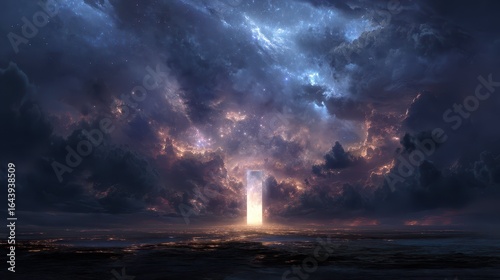 Celestial Gate Opening in the Sky Surrounded by Mystical Clouds