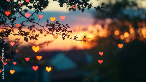 Celestial hearts connect constellations in a night sky of fate and destiny representing relationships with a minimalistic bright tone and blurred empty space evoking a sense of chaos and destiny