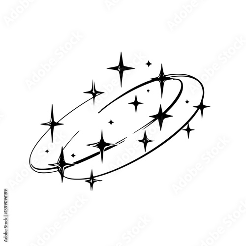 Celestial Orbit: Starbursts and Swirling Lines Illustration