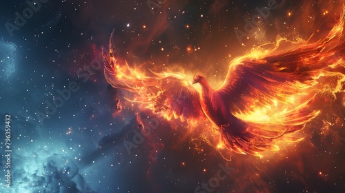 Celestial Phoenix Soaring Through Glowing Cosmic Expanse of Stars and Nebulae