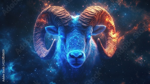 Celestial ram portrait outer space digital art cosmic environment close-up astrological concept