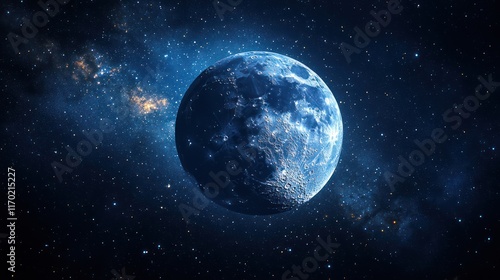 Celestial Serenity: A Blue Moon in the Cosmic Ocean