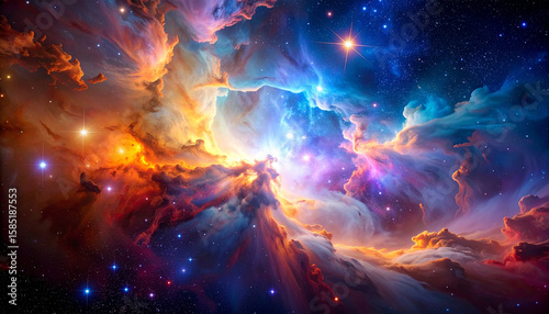 Celestial Tapestry: A vibrant cosmic panorama, showcasing a stunning array of nebulas, galaxies, and stars. The image offers an immersive experience into the vastness and beauty of the universe.