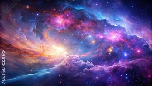 Celestial Tapestry A Vivid Symphony of Cosmic Clouds and Sparkling Stars, Illuminated by a Radiant Light Source