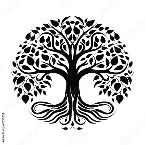 Celtic Tree of life decorative Vector ornament, Graphic arts, dot work. Grunge vector illustration of the Scandinavian myths with Celtic culture.