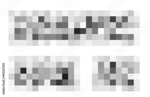 Censored pixel bar. Set of blured grey censorship background. Vector illustration for photo, app or tv.