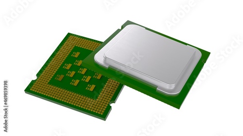 central processing unit CPU top side and bottom side view 3D computer generated image isolated on white background