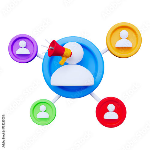 Central White Figure with Megaphone and Blue Connections on Transparent Background